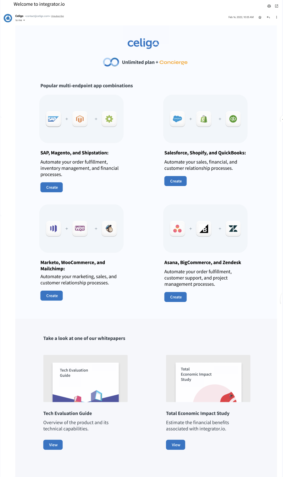 This email highlighted the benefits of converting to a paid account, from unlimited flows to a dedicated tech to premier support.