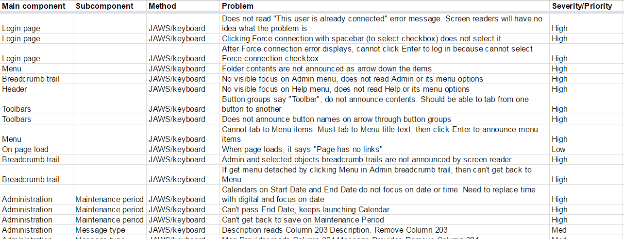I tested designs using JAWS and created a formal VPAT (Voluntary Product Accessibility Template) to document compliance gaps and guide remediation.