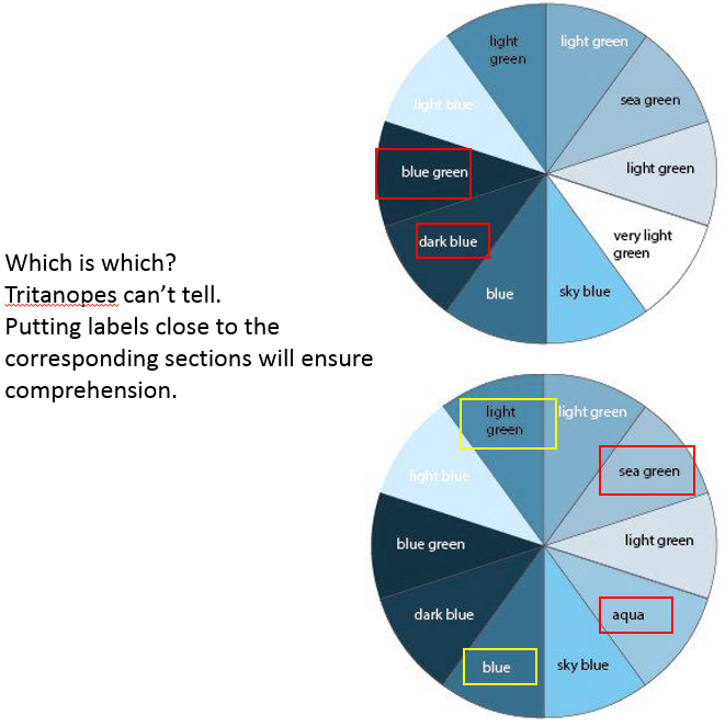 I created palettes that would work for Protonopia, Deuteronopia, and Tritanopia. This covered both red-green and blue color blindness.