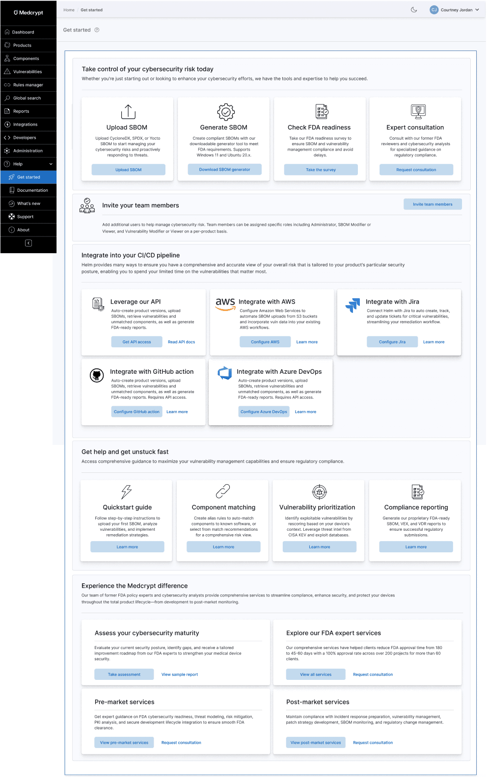 The company was an early-stage medtech cybersecurity startup, and the product existed as a concept-phase prototype with a small customer base. There was significant urgency to establish an enterprise-ready platform to support medical device manufacturers under emerging FDA cybersecurity expectations.