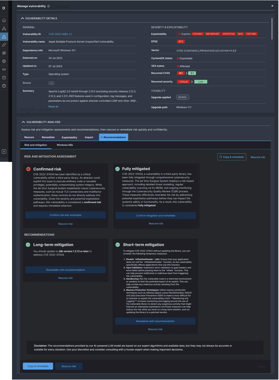 Both components and vulnerabilities had the same main goals, which was to remediate the most exploitable vulnerabilities and have an accurate understanding of your overall risk. From research, we'd found that many companies just wanted vulnerability remediation to be automated so that they didn't have to spend valuable cycles on this. We now had an AI guidance system that collected security advisories and vulnerability information from many sources, so this is integrating that automation to get customers to value quickly.
